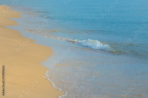 Fototapeta premium wave of blue ocean on sandy beach.
