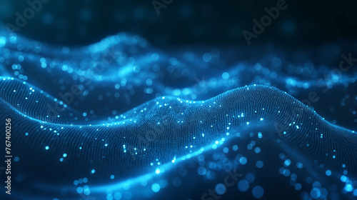 Fototapeta premium Wave of dots and weave lines. Abstract blue background for design on the...