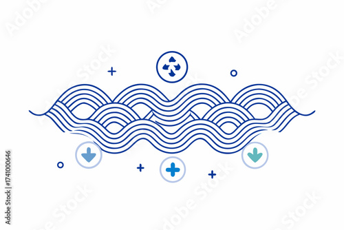 Fototapeta premium Wave pattern with tiny recycling arrows integrated design