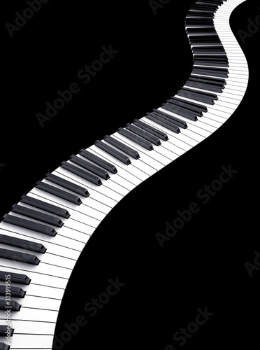 © Christoph Burgstedt, Naklejka premium Wave-shaped bent musical keyboard of a piano - 3d illustration