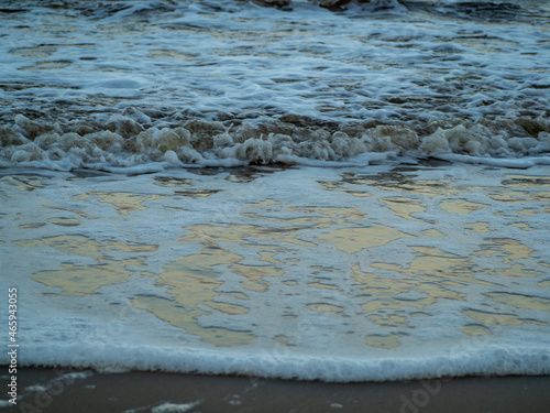© Jakob, Fototapeta premium Wave with white foamy coastline beach. Sandy shore.