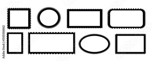 Fototapeta premium Wave zigzag dividers. Undulating zig zag round frame.Color rectangle frames with wiggly borders.Silhouette stickers circle, square, oval.Geometric shapes with scallop and zigzag edges set.