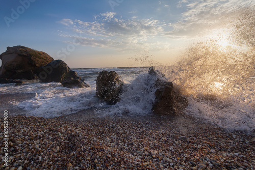© DmyTo, Fototapeta premium Waves beat on stones on the seashore