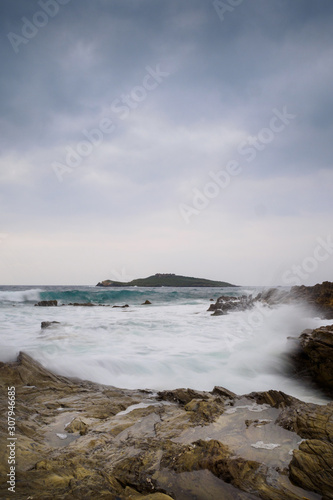 Fototapeta premium Waves breaking on rocks, Tlantic Ocean, Portugal