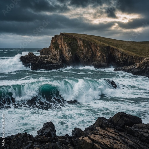 © MuhammadUmar, Obraz premium waves crashing on rocks