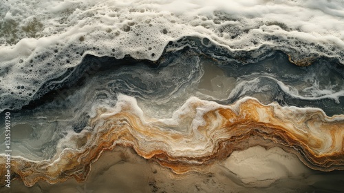 Fototapeta premium Waves crashing on shoreline ocean beach nature photography calm environment aerial view fluid dynamics