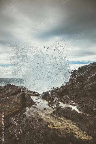 © Erik, Obraz premium Waves crashing or rocks in hawaii