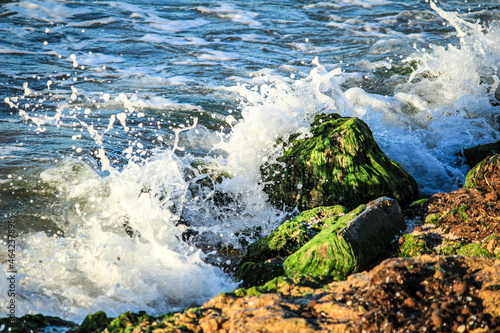 Fototapeta premium Waves crashing rocks on the shore