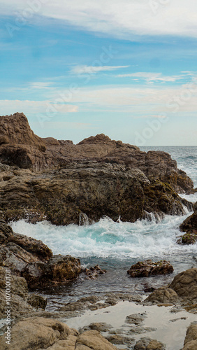 © Ilham, Obraz premium waves hitting rocks, indonesia beach