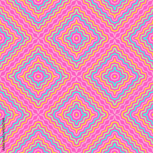 © Namphon, Fototapeta premium waves lines pink, blue and yellow,seamless pattern,on blue background.