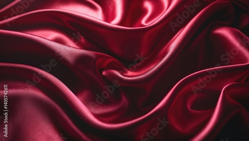 © NeuralNiche, Obraz premium Waves of empty red fabric texture