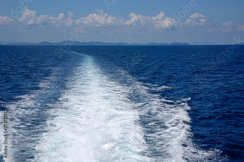 Fototapeta premium waves of water behind high speed catamaran on Thailand Gulf
