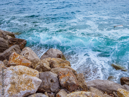 Fototapeta premium Waves on the beach with bays and rocks in Croatia