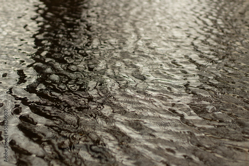 Obraz premium Waves on water. Wind on surface of water. Reflection in puddle.