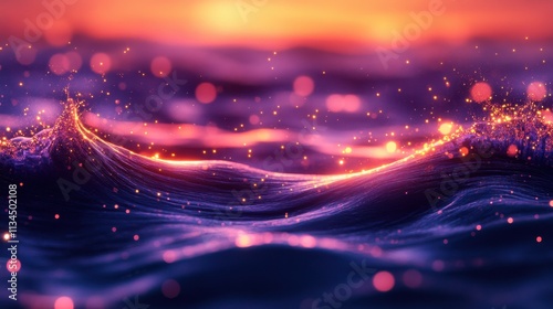 © Oleksandr, Obraz premium Waves shimmer with golden light during a breathtaking sunset on the tranquil ocean, creating a mesmerizing atmosphere for reflection