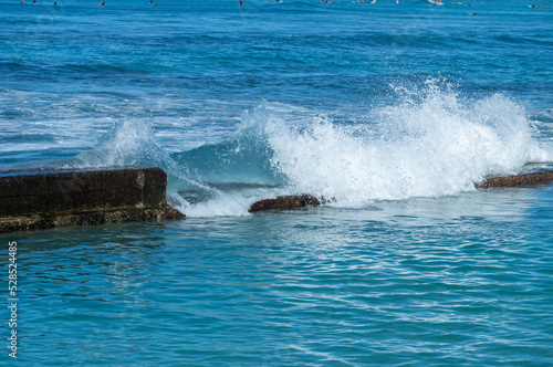 © ttrimmer, Fototapeta premium Waves Surging Over an Old Break Wall as Sea Levels Rise Worldwide.