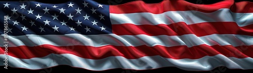 Naklejka premium Waving American flag featuring stars and stripes, symbolizing patriotism, freedom, and national pride in the United States.