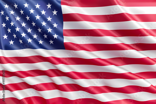 Naklejka premium Waving American flag, vibrant colors of red, white, and blue create a sense of patriotism and unity.