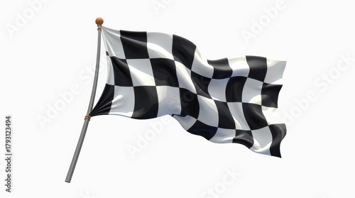 © Nahid, Obraz premium Waving black and white checkered flag on a pole isolated on white