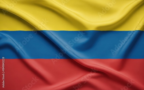 © MDAftub, Fototapeta premium Waving Colombian flag with yellow blue and red horizontal stripes fabric texture textile