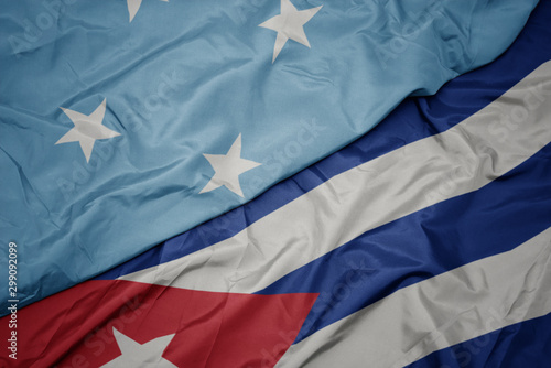 © luzitanija, Fototapeta premium waving colorful flag of cuba and national flag of Federated States of Micronesia .