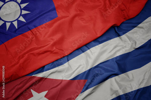 Naklejka premium waving colorful flag of cuba and national flag of taiwan.