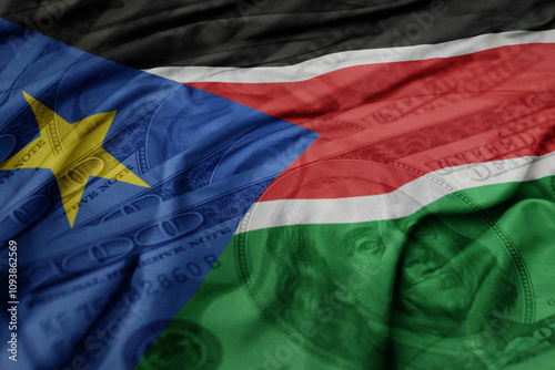 Fototapeta premium waving colorful flag of south sudan on the dollar money background. finance...