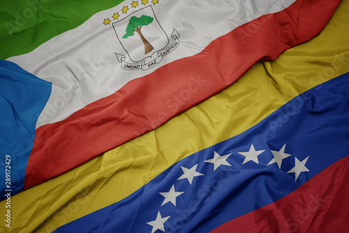 © luzitanija, Fototapeta premium waving colorful flag of venezuela and national flag of equatorial guinea.