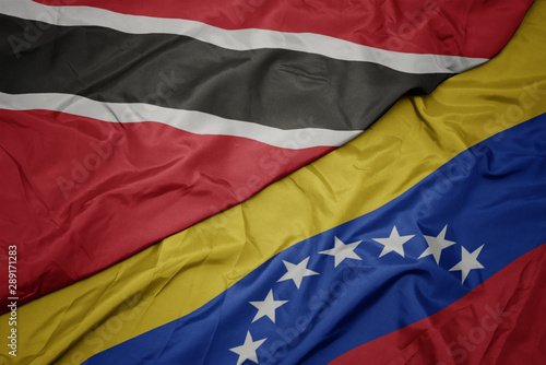 Fototapeta premium waving colorful flag of venezuela and national flag of trinidad and tobago.