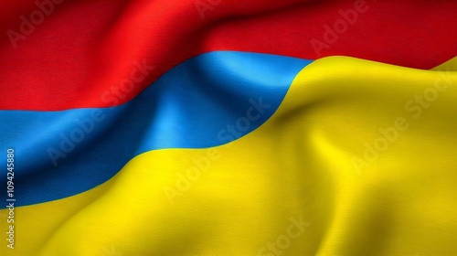 © RAT-GSJ, Obraz premium Waving Flag of Armenia and Ukraine with Vibrant Colors and Textures, Symbolizing Friendship and Unity Between Two Cultures in a Beautiful Textile Composition