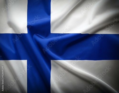 © MdRakibul, Fototapeta premium Waving flag of Finland in beautiful sky.