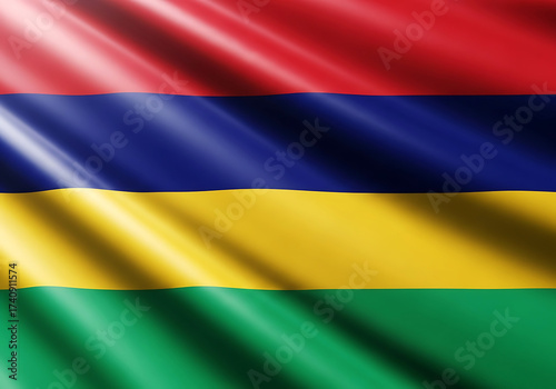 Fototapeta premium Waving flag of mauritius with red blue yellow and green stripes