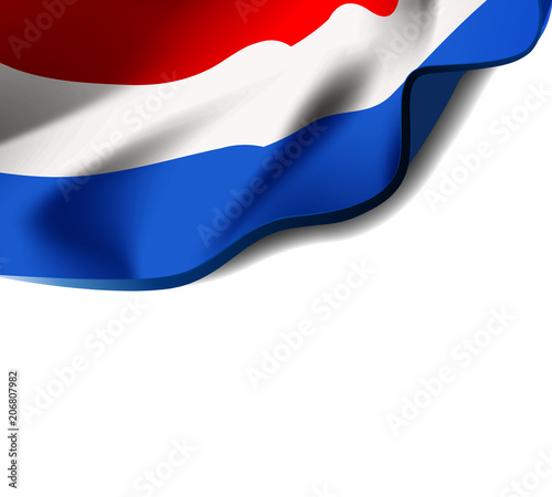 © Maxim P, Naklejka premium Waving flag of Netherlands close-up with shadow on white background. Flag of Holland. illustration with copy space