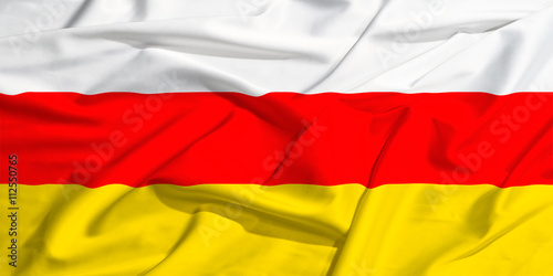 Naklejka premium waving flag of South Ossetia on a silk bright drape