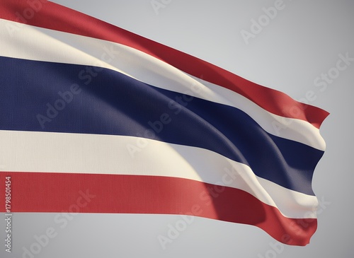 Naklejka premium Waving Flag of Thailand Against a Clear Sky, Symbolizing National Pride and Identity.