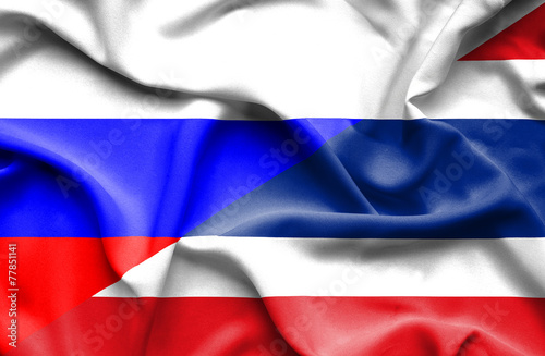 © irishmaster, Naklejka premium Waving flag of Thailand and Russia