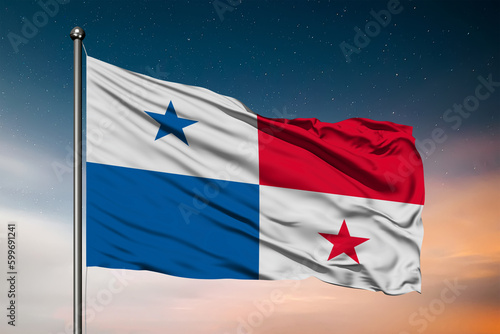 © Miroslav, Naklejka premium Waving flag of the Panama. Pole Flag in the Wind. National mark. Waving Panama Flag. Panama Flag Flowing.