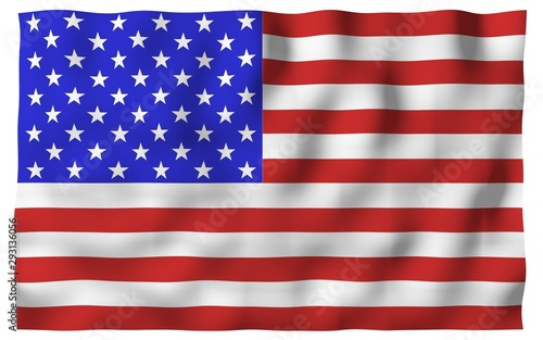 © Plastic man, Naklejka premium Waving flag of the United States of America. Stars and Stripes. State symbol of the USA. 3D illustration