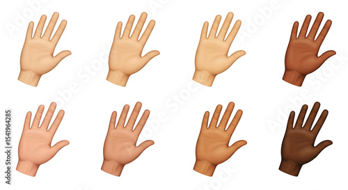 © Bboy, Obraz premium Waving Hand emoji in various skin tones isolated on