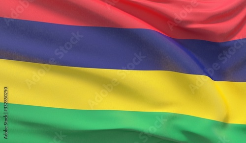 Fototapeta premium Waving national flag of Mauritius. Waved highly detailed close-up 3D render.