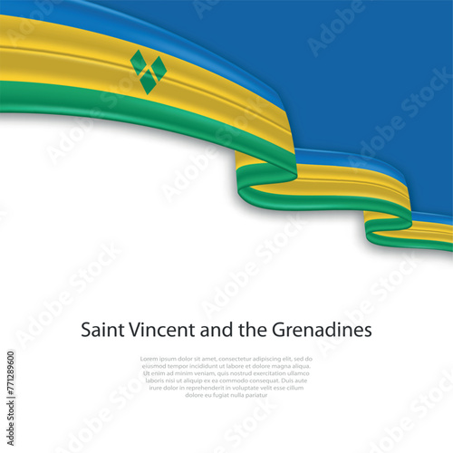 Fototapeta premium Waving ribbon with flag of Saint Vincent and the Grenadines