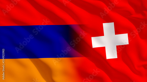 Obraz premium Waving Switzerland and Armenia National Flags with Fabric Texture