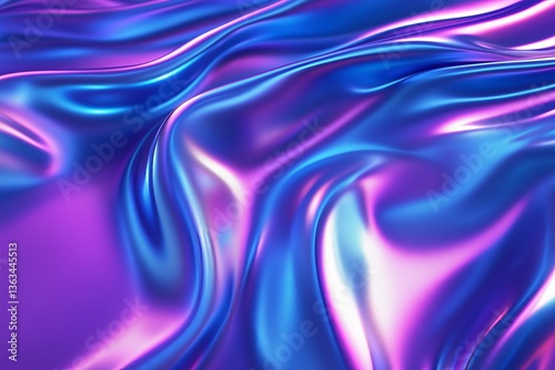 © Kristina, Fototapeta premium Wavy blue and purple abstract background extreme close-up. 3d renders metallic liquid background. Abstract neon texture. Rainbow 3d holographic foil. Abstract blue and purple illuminated smooth wavy
