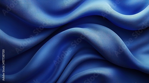 Obraz premium Wavy blue fabric folds background texture, ideal for luxury product backdrop