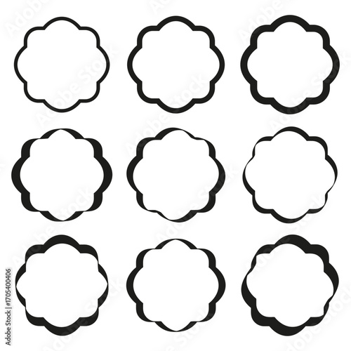 Fototapeta premium Wavy circle frames. Scalloped round border. Abstract badge illustration....