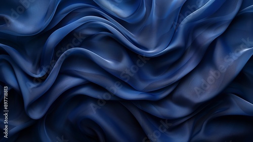 © Ailee Tian, Obraz premium Wavy cloth in dark blue colors.