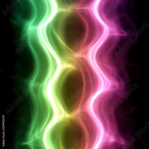 © Menggo, Fototapeta premium Wavy Colorful Glowing Lines Against A Black Background