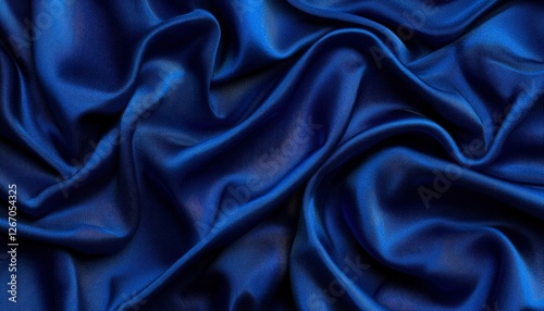 Fototapeta premium Wavy dark blue silk fabric, background texture for luxury design use
