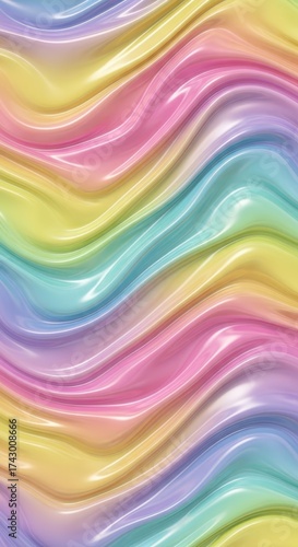 Obraz premium Wavy, flowing texture with iridescent rainbow colors, smooth and glossy surface
