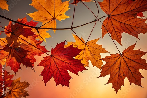 © Sabbir, Fototapeta premium Wavy Line With Leaf Abstract Blue Pink Background